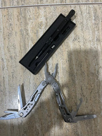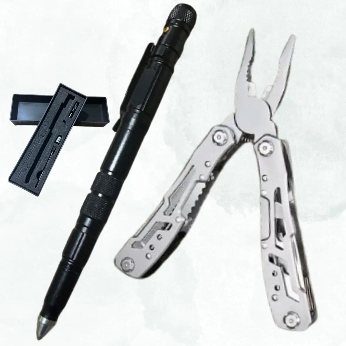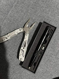El kit incluye el Alicate 24 en 1 y el Lapicero 8 en 1, dos herramientas multifuncionales que te permiten resolver tareas cotidianas, emergencias o actividades al aire libre.