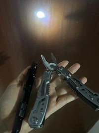 Utiliza el Alicate 24 en 1 para tareas de bricolaje, como cortar cables, ajustar tornillos o realizar reparaciones rápidas. El Lapicero 8 en 1 será útil para escribir, iluminar áreas oscuras, abrir botellas, o incluso romper vidrio en caso de emergencia.