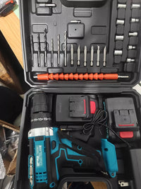 - Incluye maletín organizador con brocas, puntas y cargador.